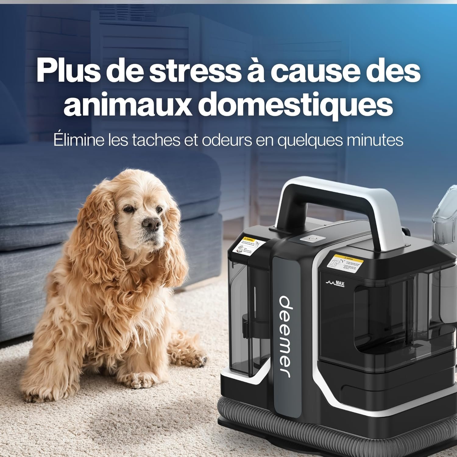 « Deemer Shampouineuse Portable D01, 750W, format compact 5,97kg, efficace sur tâches tenaces animaux/enfants, voir : https://amazon.fr/dp/B0CFR9LG64?tag=bissellsteamcleaners-21«