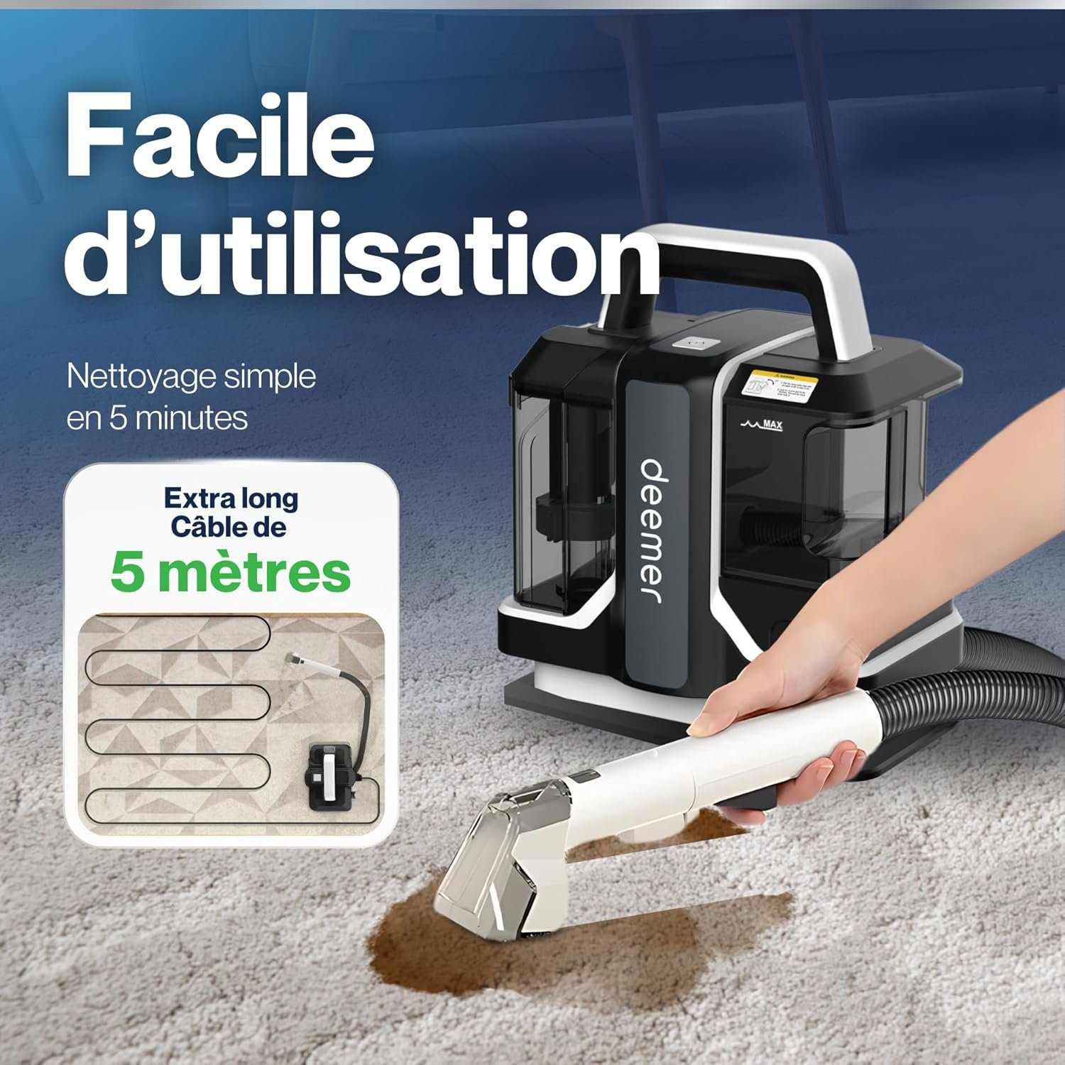 • Deemer Shampouineuse Portable D01 → https://amazon.fr/dp/B0CFR9LG64?tag=bissellsteamcleaners-21