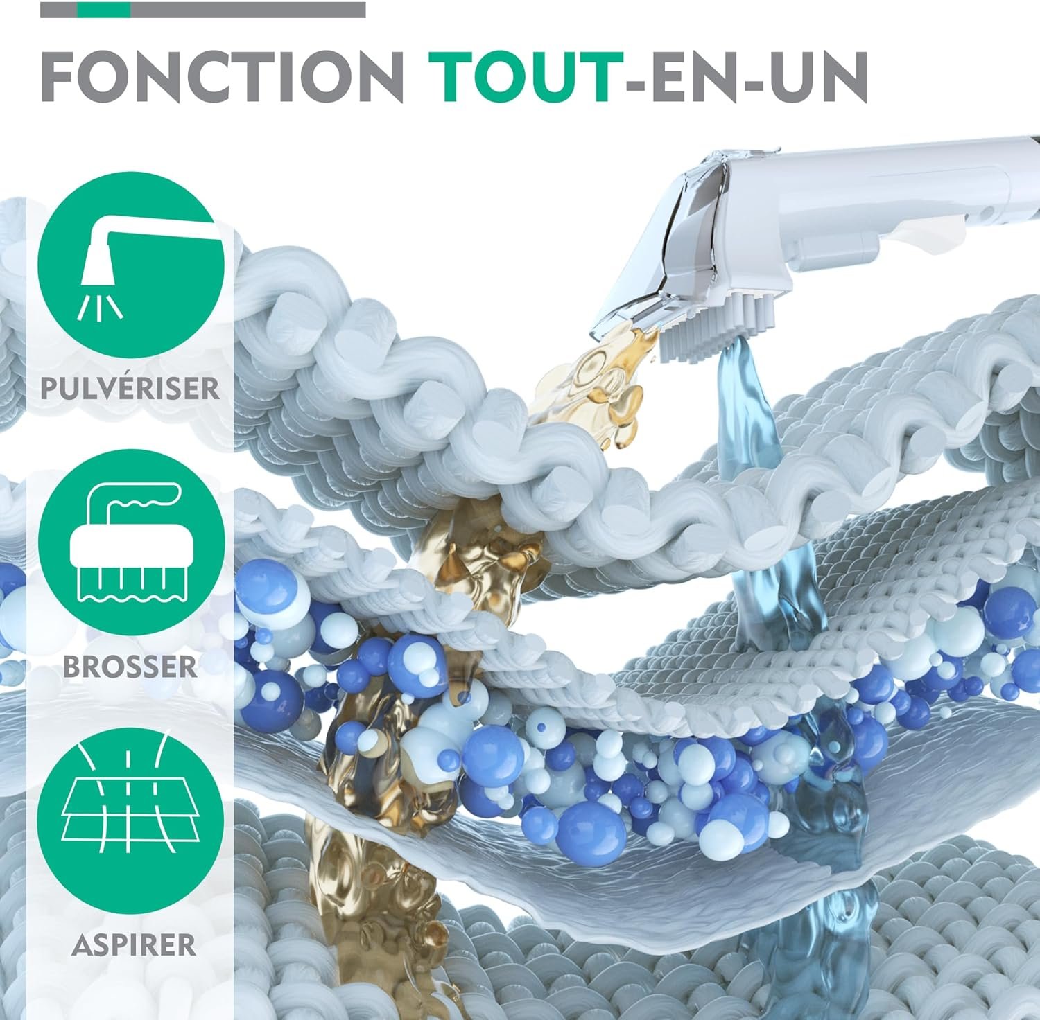 Le principe repose sur un système qui injecte et aspire en même temps : on détache la saleté puis on récupère l’eau sale directement. Les retours d’utilisateurs mentionnent une capacité d’aspiration jugée « impressionnante » dans leurs commentaires, appréciée sur les taches récentes et lors de l’entretien préventif des tissus.