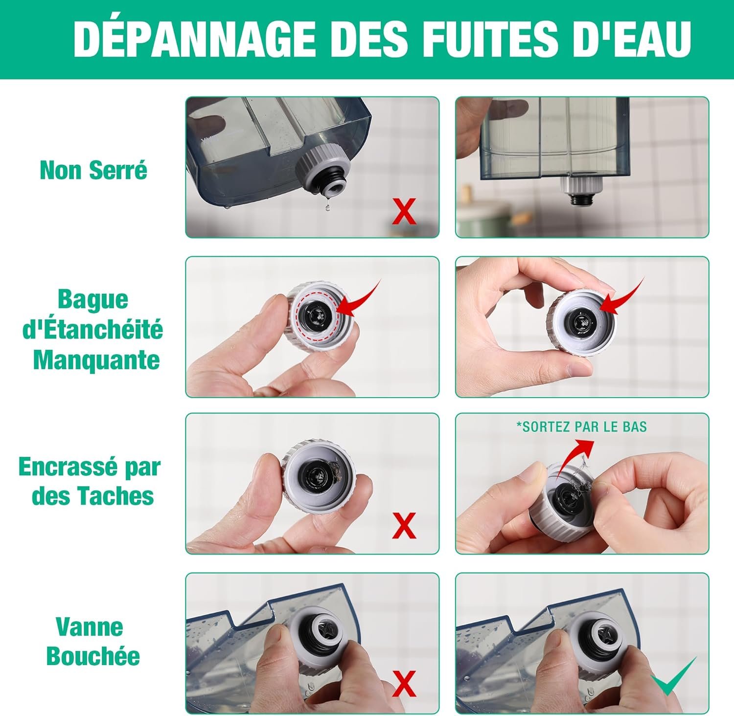 Les réservoirs amovibles simplifient le remplissage et la vidange. Dans l’usage, cette disposition facilite le nettoyage complet des contenants après utilisation.