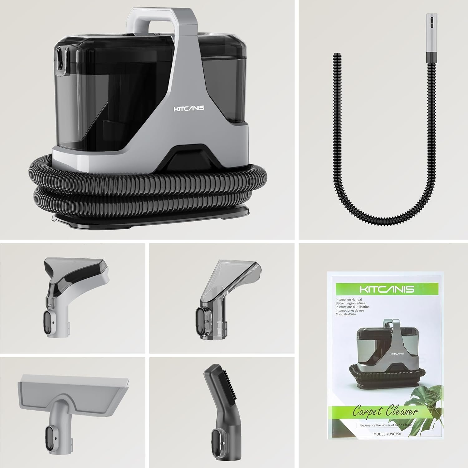 Photos: Kitcanis Shampouineuse 600W 78dB 15KPa Nettoyeur Canapé Tissu apporter 4 Tête de Remplacement pour Tapis, Moquettes, Meubles, Tissus, Poils d’animaux, Voiture & Plus Encore