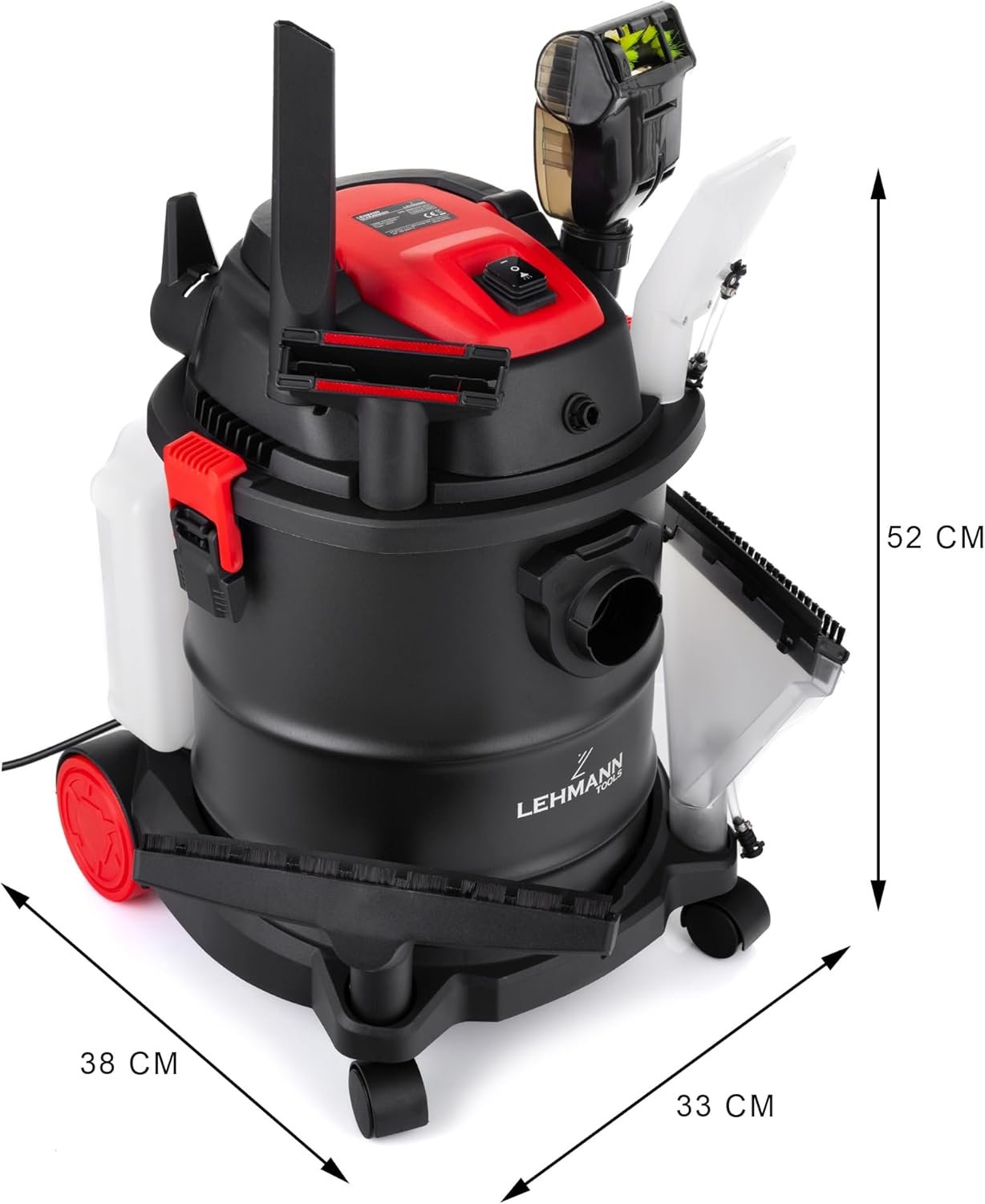 Le LEHMANN Ultrawash utilise un procédé d’injection-extraction traditionnel, bénéficiant de sa motorisation puissante. Il injecte le liquide nettoyant sous une pression modérée, puis aspire aussitôt l’eau souillée grâce à la turbine de 2000W.