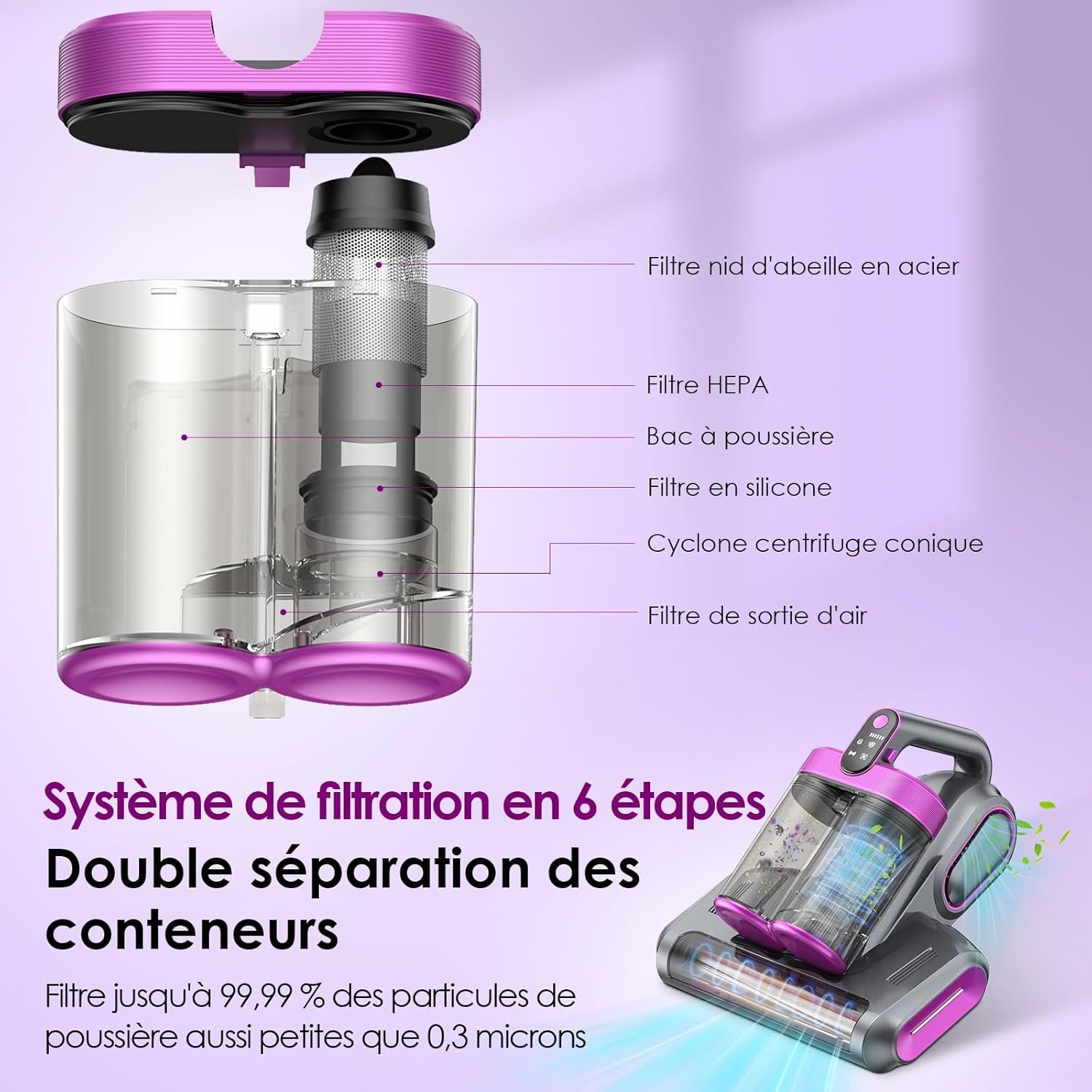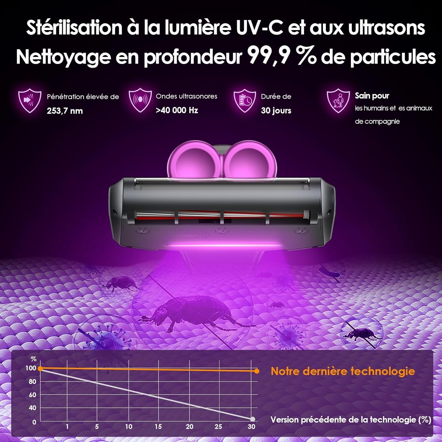 ✅ Stérilisation UV efficace (253,7 nm, élimine 99,9% acariens vs aspiration seule)