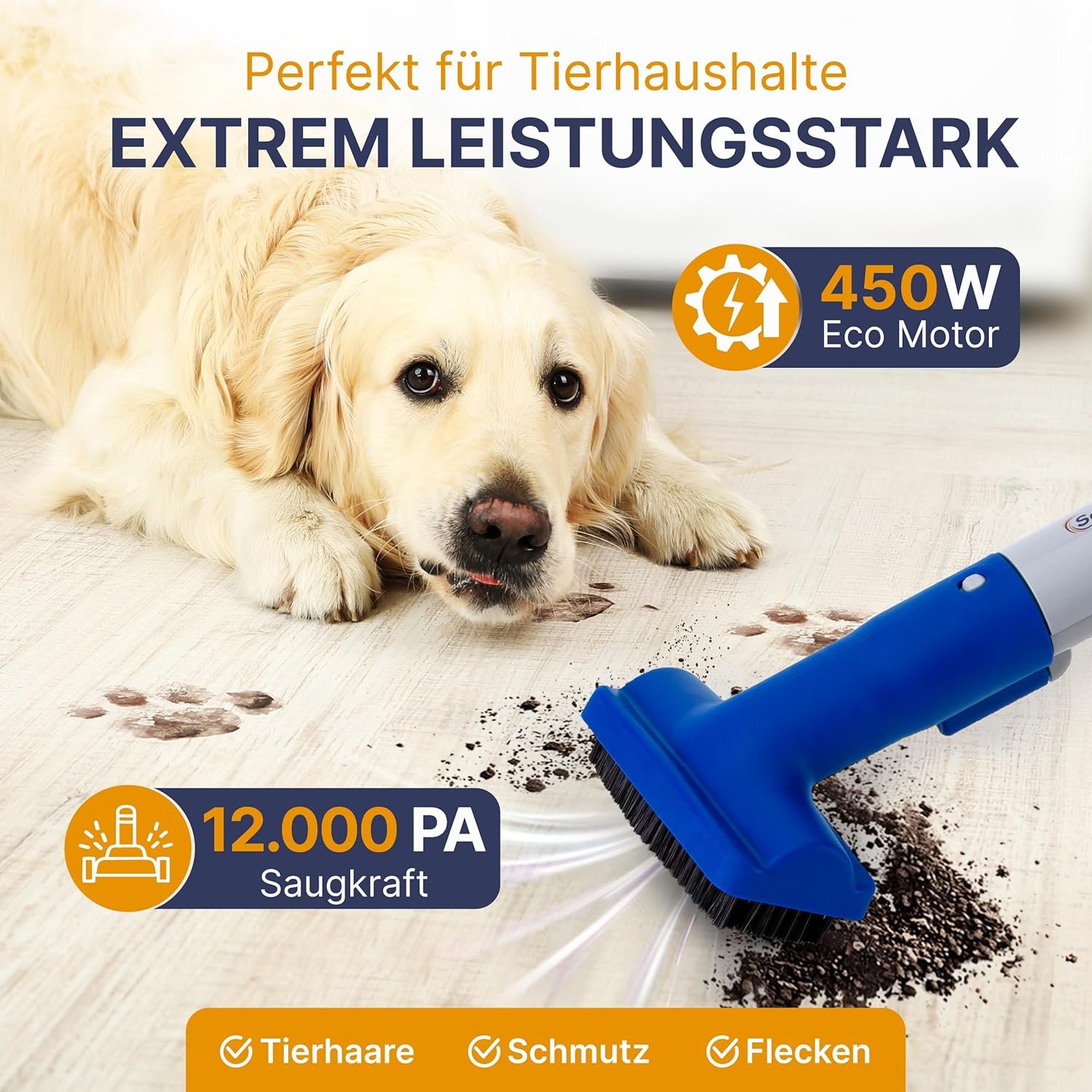 ✅ Moteur efficace (450W, adapté surfaces textiles et lisses)